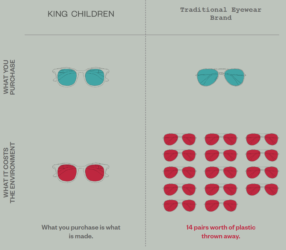 In sum, for every pair of frames a consumer buys, 14 pairs worth of eyewear in plastic go directly to the landfill: